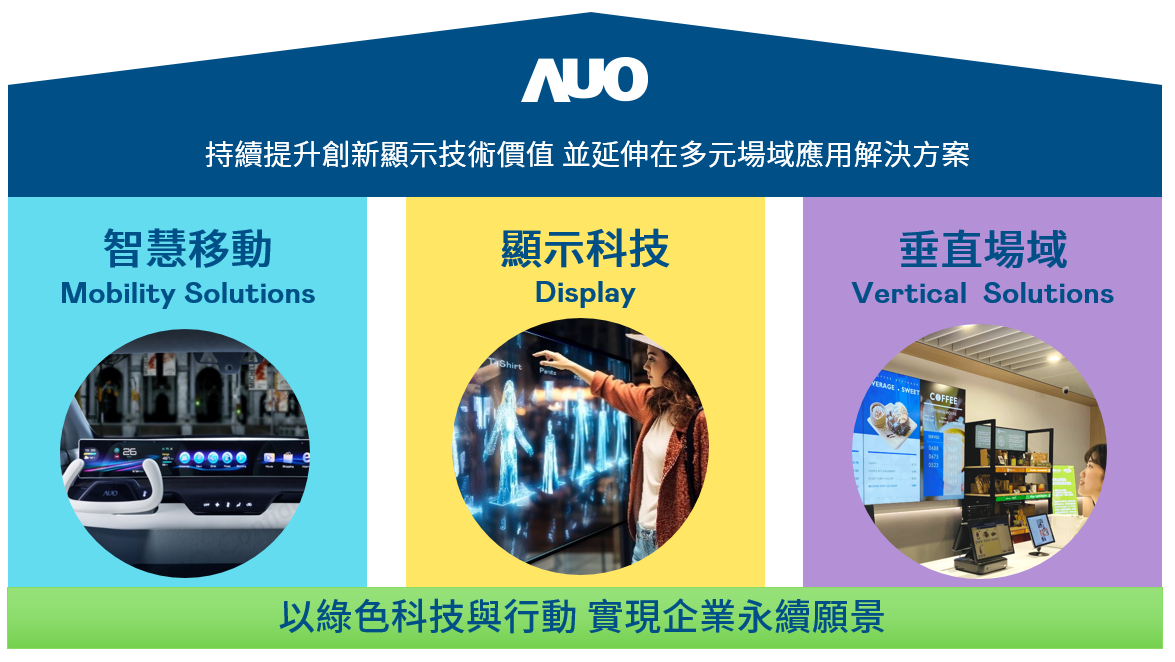 我們持續推動「雙軸轉型」,在精進顯示技術附加價值(Go Premium),與深化垂直市場應用(Go Vertical)的策略下,對應ag真人国际官网的優勢競爭力與趨勢,我們奠定顯示技術智慧移動垂直場域三大永續營運支柱,在顯示技術領域的根基之上,延伸布局多元場域應用解決方案。將先進顯示科技助力智慧移動及垂直場域發展,並以綠色科技與行動為實踐,在轉型之路上貫徹永續經營之願景。